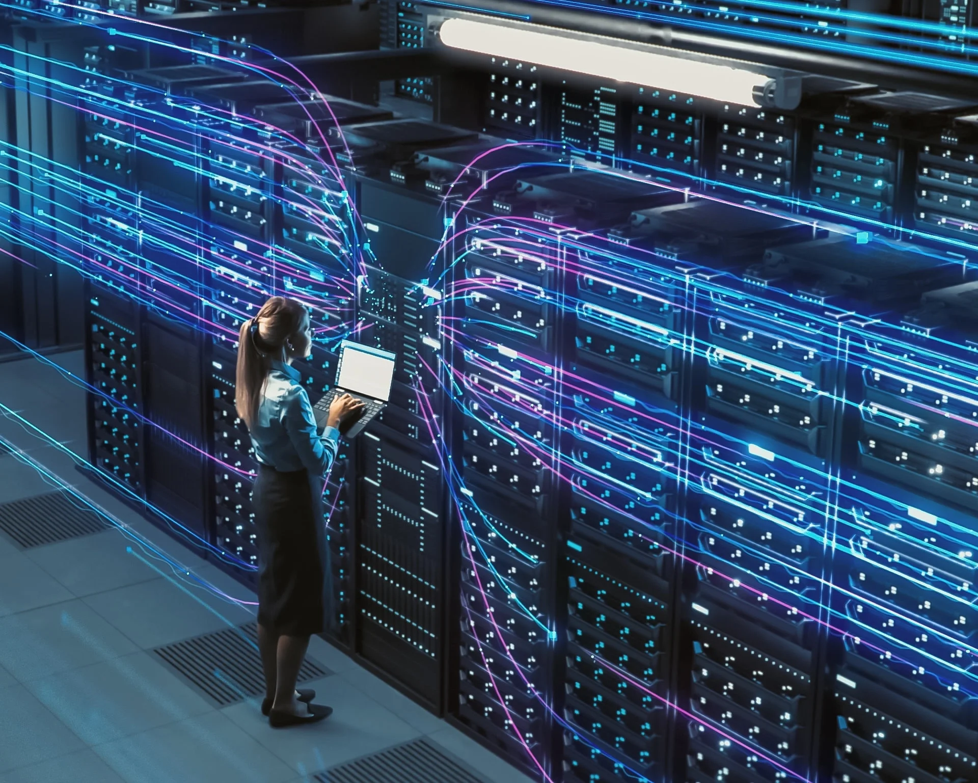 Ofrecemos soluciones de Data Center con infraestructura robusta y escalable. Nos enfocamos en la continuidad del negocio y la gestión eficiente de recursos con tecnologías de nube híbrida.